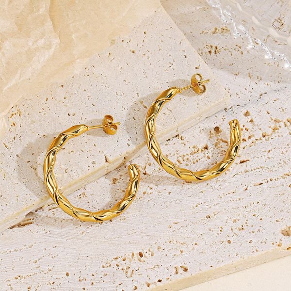 18K Gold Plated Twisted Wire Hoop C Shape Stainless Steel Earrings for Women Dangle Stud Earrings