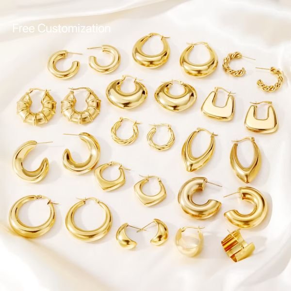Dyola Vintage High Quality Hollow Earring Hypoallergenic Jewelry 18K Gold Plated Stainless Steel Hoop Earrings For Women