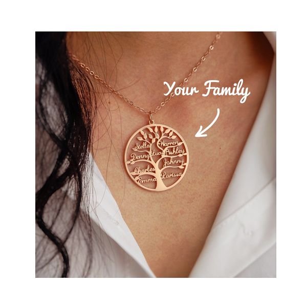 Engraved Family Name Necklace Personalized Name Necklace Tree of Life Necklace Multiple Names Jewelry Gift for Family and Mom