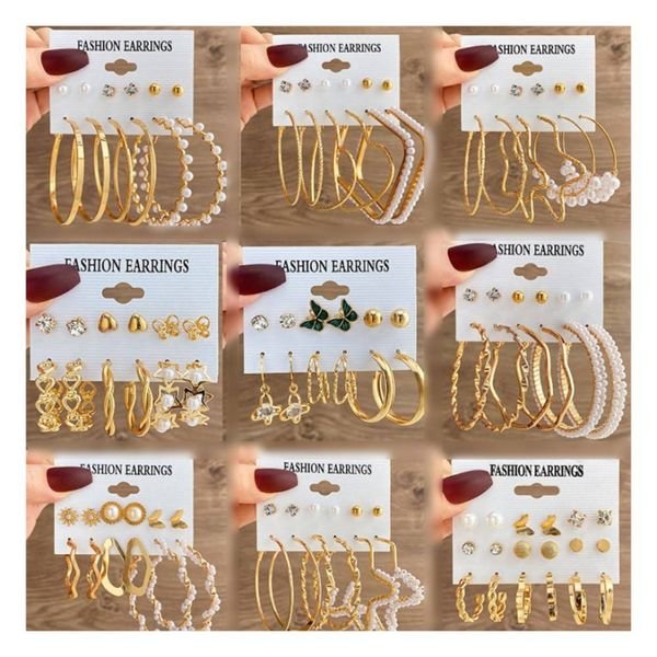 Fashion New Pearl Heart Circle Gold Plated Butterfly Hoop Stud Earrings Set for Women Jewelry Wholesale
